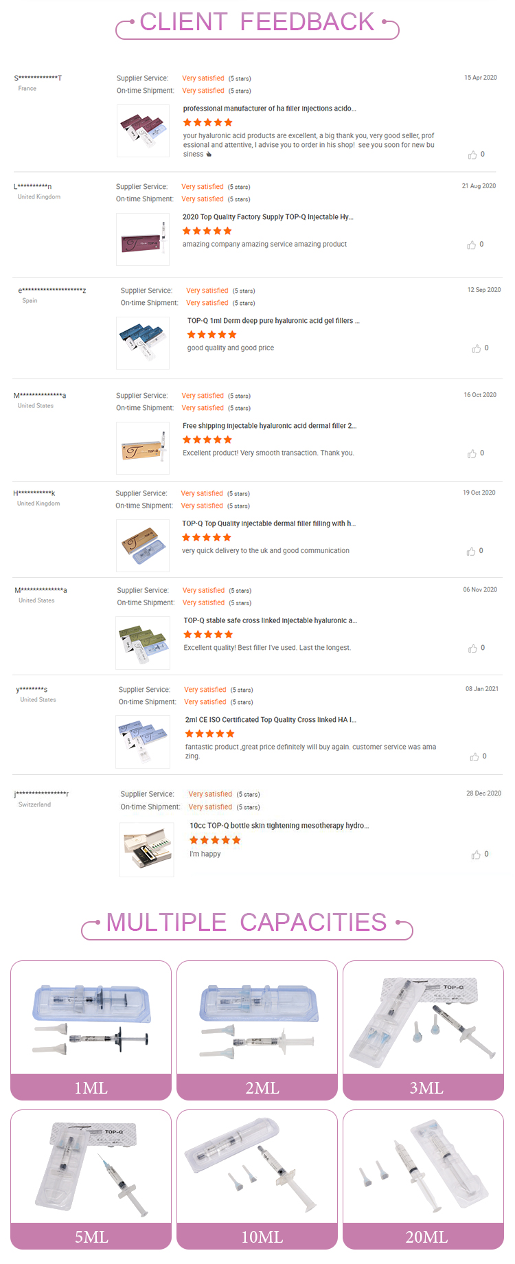 They 4 products make it possible to quickly and effectively meet the vast majority of patient's needs for correction and augmentation of wrinkle and folds.
